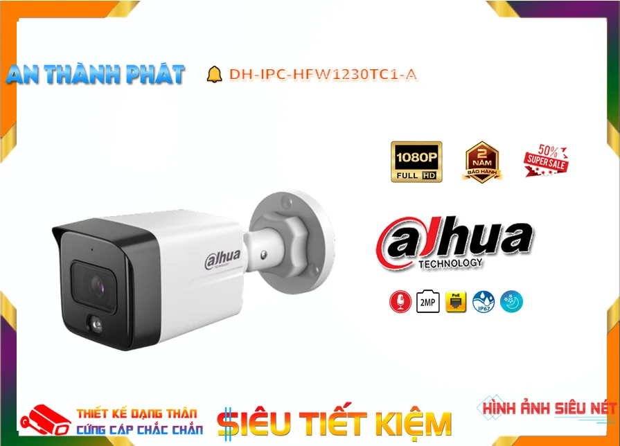 Với thiết kế bền bỉ, khả năng chống nước và bụi bẩn đạt chuẩn IP67, camera DH-IPC-HFW1230TC1-A rất phù hợp cho cả môi trường trong nhà và ngoài trời. Sản phẩm không chỉ giúp bảo vệ an ninh cho gia đình và doanh nghiệp mà còn dễ dàng tích hợp vào hệ thống giám sát hiện có.
